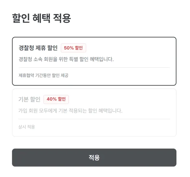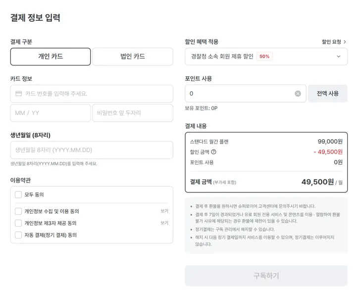 @police.go.kr 도메인으로 가입하신 분들은 자동으로 할인이 적용됩니다.